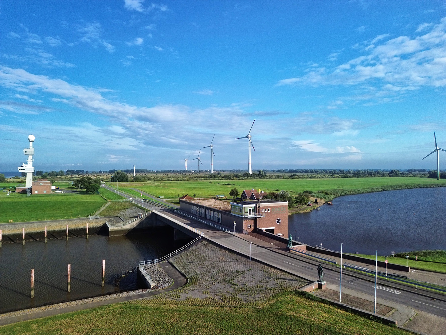 Für eine zuverlässige Binnenentwässerung greift eins ins andere. Von den Schöpfwerken und Sielen über die Vorflut bis zum allgegenwärtigen Schloot muss alles zusammenpassen. Das Nadelöhr der Binnenentwässerung ist bei uns an der Küste der Deich. Durch ihn hindurch muss das Wasser sicher in die See gebracht werden. Ein Drittel des Verbandsgebietes liegt unter Normalnull (NN). Aufgrund dieser geografischen Verhältnisse müssen wir die niedrigsten Pegelstände im Nordwesten Niedersachsens einhalten, nämlich in den Wintermonaten NN – 1,40 m und in den Sommermonaten NN – 1,27 m.