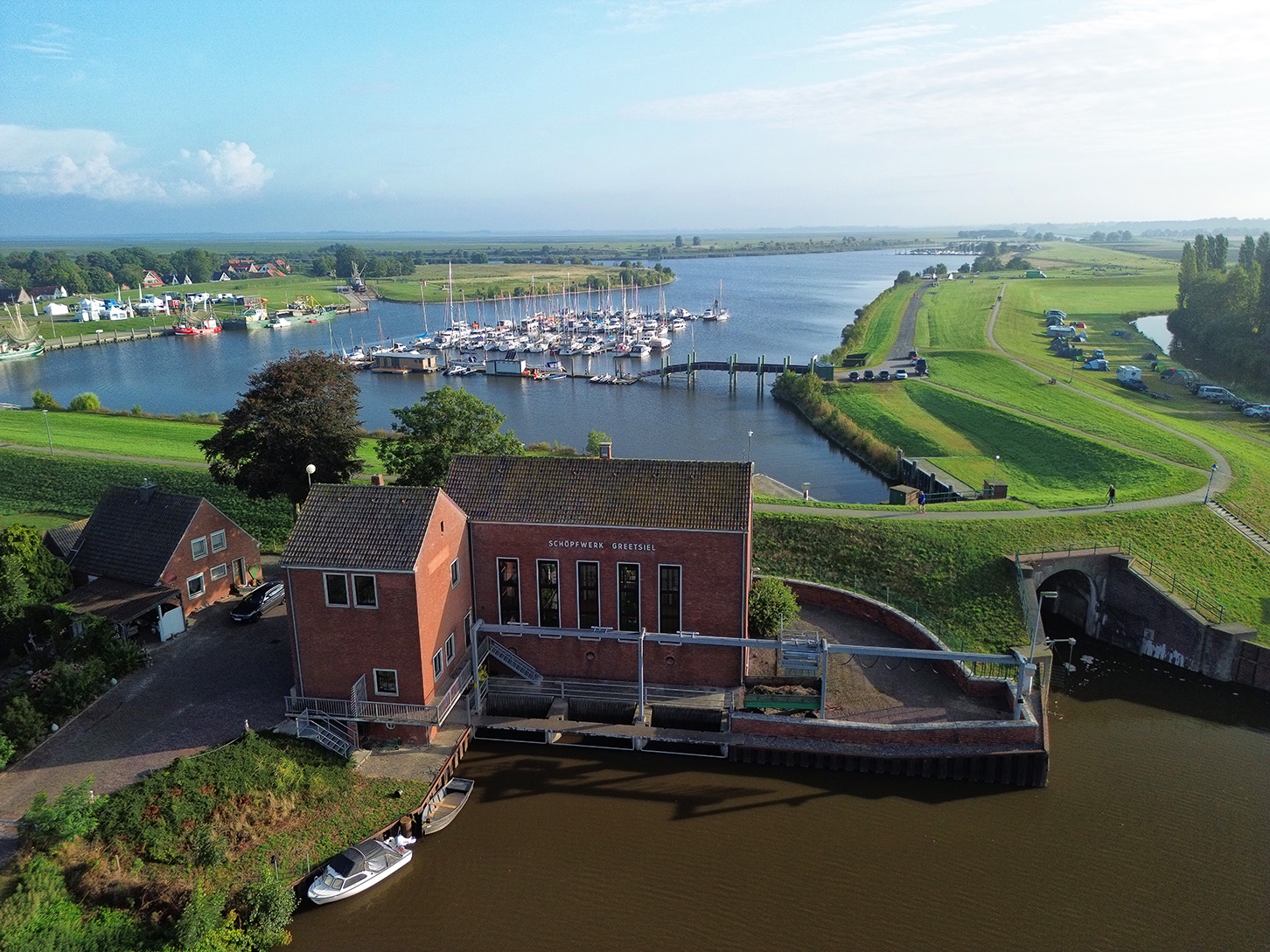 Das Mündungsschöpfwerk Greetsiel wurde im Jahr 1957 in Betrieb genommen. Die drei Pumpen haben eine Förderleistung von je 4,5³/s. Das Alte Siel (Baujahr 1798) und das Neue Siel (Baujahr 1891) konnten mit dem Plan zum Küstenschutz Leybucht im Jahr 1996 wieder geöffnet und in Betrieb genommen werden. Über die Hauptvorfluter Altes Greetsieler Sieltief und Neues Greetsieler Sieltief wird das Wasser aus dem nördlichen Verbandsgebiet zum Hauptschöpfwerk Greetsiel und seinen Sielen befördert. Das Einzugsgebiet beläuft sich auf etwa 11.000 Hektar.