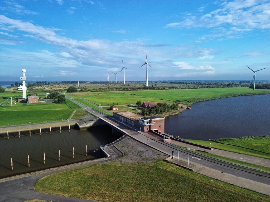 Am 09.12.2017 wurde die Windenergieanlage offiziell in Betrieb genommen. Sie wurde als „echte Bürgerwindmühle“ in der hiesigen Presse deklariert, da sie allen Beitragszahlern des Verbandes zu Gute kommt und somit rd. 40.000 Mitgliedern. Unsere oberste Zielsetzung war es, den stetig steigenden Strompreisen entgegenzuwirken und die Verbandsbeiträge der Mitglieder somit stabil zu halten. Der erzeugte Strom kann direkt abgegriffen und von den Pumpen im Hauptschöpfwerk Knock verbraucht werden. So konnten in den letzten Jahren etwa 60 – 70 Prozent der benötigten Energie für den Pumpbetrieb im Hauptschöpfwerk Knock direkt aus unserer Windenergieanlage bezogen werden. Auf diese Weise schonen wir wertvolle Ressourcen und kommen unserer ökologischen Verantwortung nach.